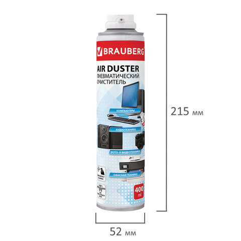 Баллон со сжатым воздухом BRAUBERG ДЛЯ ОЧИСТКИ ТЕХНИКИ, 400 мл, 511519