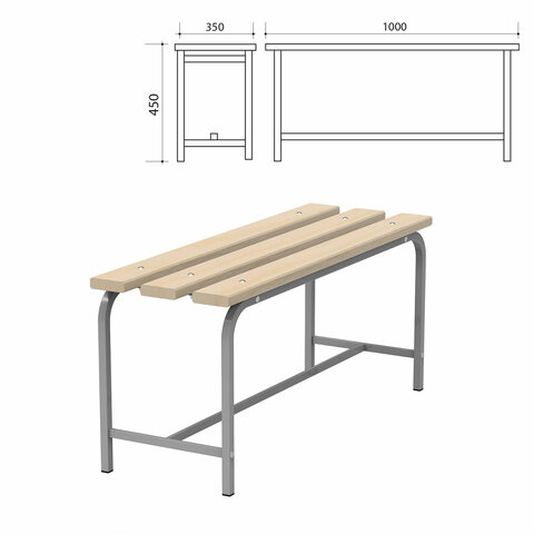 Скамья предназначена для эксплуатации в раздевалках спортивных учреждений, предприятий, офисов. Металлический каркас и доски из натуральной древесины обеспечивают надежность и долговечность эксплуатации. Простая сборка.