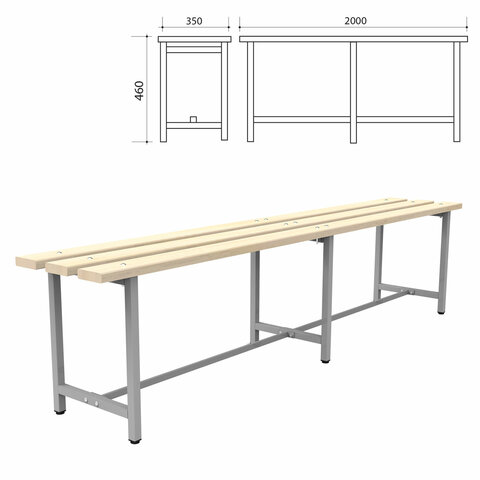 Скамья деревянная на металлокаркасе "СТ 4", 2000х350х460 мм, регулируемые опоры, каркас металлический серый, сиденье дерево