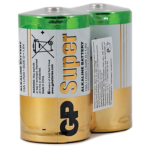 Алкалиновые батарейки GP размера D увеличенной продолжительности работы идеально подходят для приборов с высоким потреблением энергии, таких как механизированные игрушки, фонарики, портативные игровые консоли, пульты дистанционного управления.