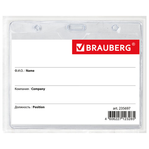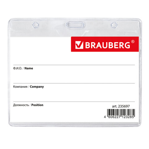 Горизонтальный бейдж BRAUBERG для именной карточки предназначен для идентификации сотрудников в компаниях, а также на семинарах, тренингах, презентациях и других мероприятиях.