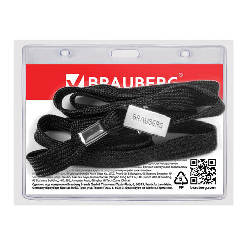 Бейдж горизонтальный (60х90 мм), на черной ленте 45 см, BRAUBERG, 235697