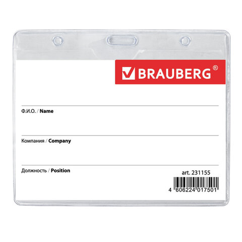 Горизонтальный бейдж BRAUBERG для именной карточки предназначен для идентификации сотрудников в компаниях, а также на семинарах, тренингах, презентациях и других мероприятиях.