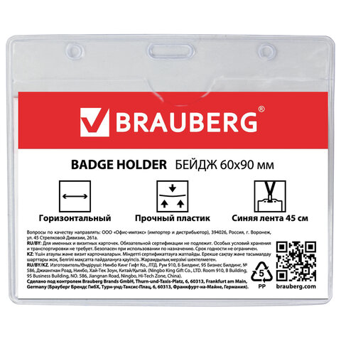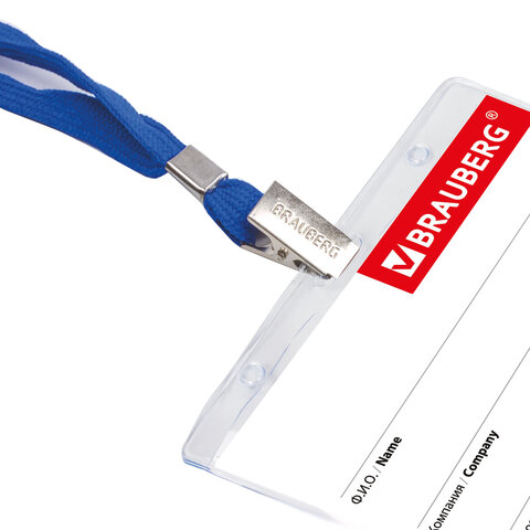 Бейдж горизонтальный (60х90 мм), на синей ленте 45 см, BRAUBERG, 231156