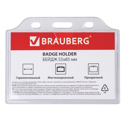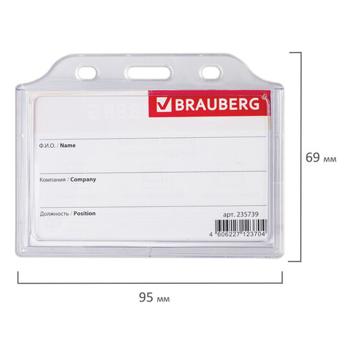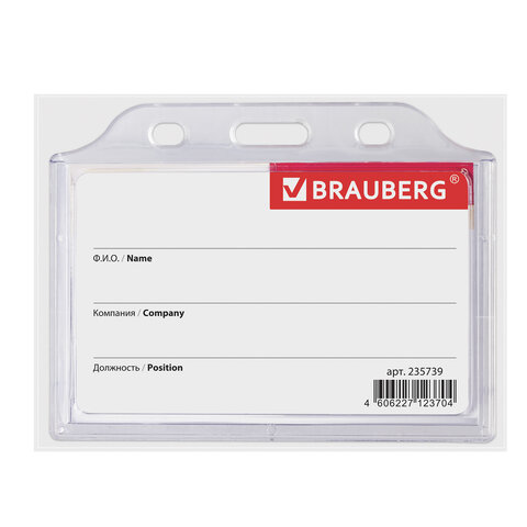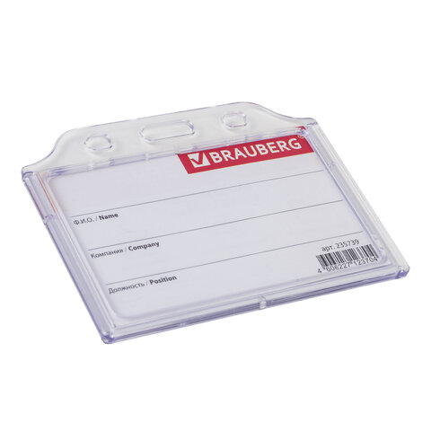 Горизонтальный бейдж BRAUBERG для именной карточки предназначен для идентификации сотрудников в компаниях, а также на семинарах, тренингах, презентациях и других мероприятиях.