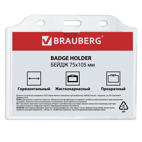 Горизонтальный бейдж BRAUBERG для именной карточки предназначен для идентификации сотрудников в компаниях, а также на семинарах, тренингах, презентациях и других мероприятиях.