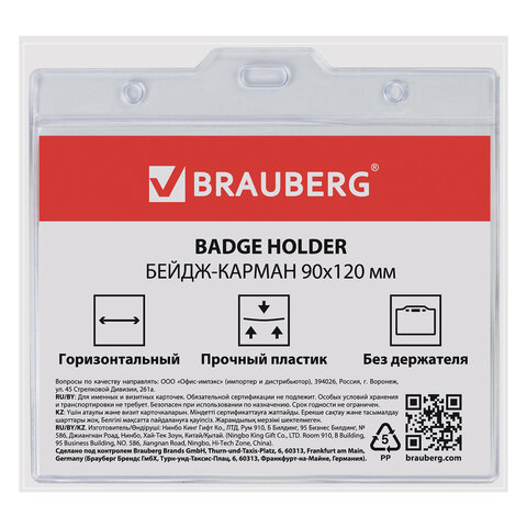 Горизонтальный бейдж BRAUBERG без крепления для именной карточки предназначен для идентификации сотрудников в компаниях, а также на семинарах, тренингах, презентациях и других мероприятиях.