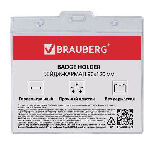 Бейдж-карман горизонтальный БОЛЬШОЙ (90х120 мм), без держателя, BRAUBERG, 235695