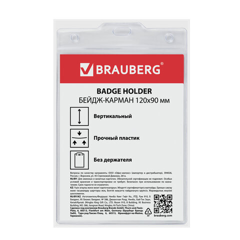 Вертикальный БОЛЬШОЙ бейдж BRAUBERG без крепления для именной карточки предназначен для идентификации сотрудников в компаниях, а также на семинарах, тренингах, презентациях и других мероприятиях.