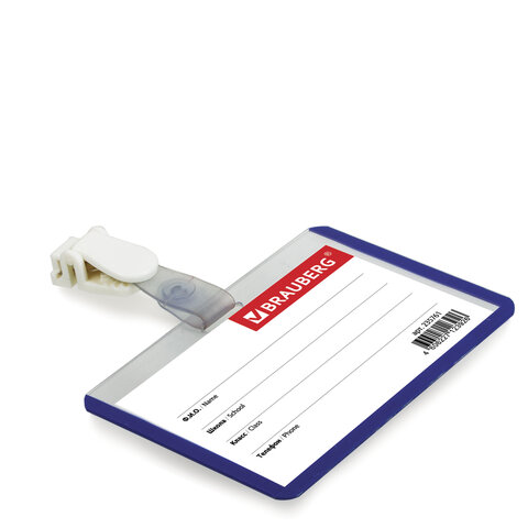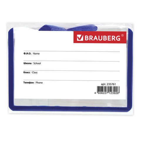 Горизонтальный бейдж школьника BRAUBERG с синей окантовкой используется для идентификации учащегося в образовательных учреждениях.