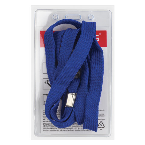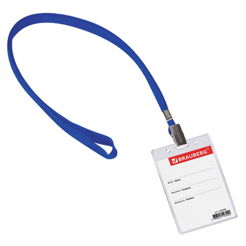 Бейдж вертикальный (90х60 мм), на синей ленте 45 см, BRAUBERG, 235698