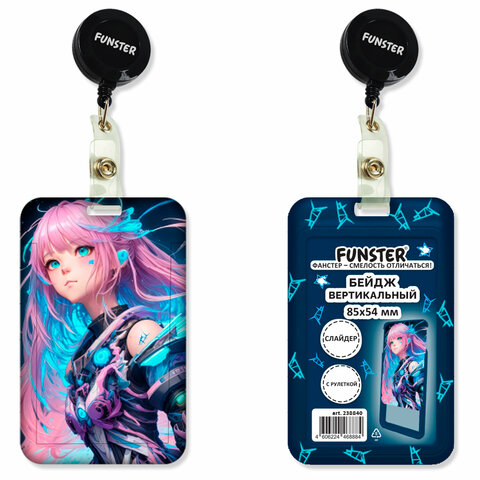 Бейдж вертикальный с 3D-печатью "Аниме" (85х54 мм), с рулеткой, СЛАЙДЕР, FUNSTER (ФАНСТЕР), 238840
