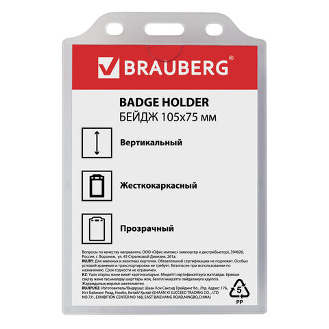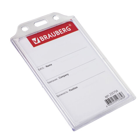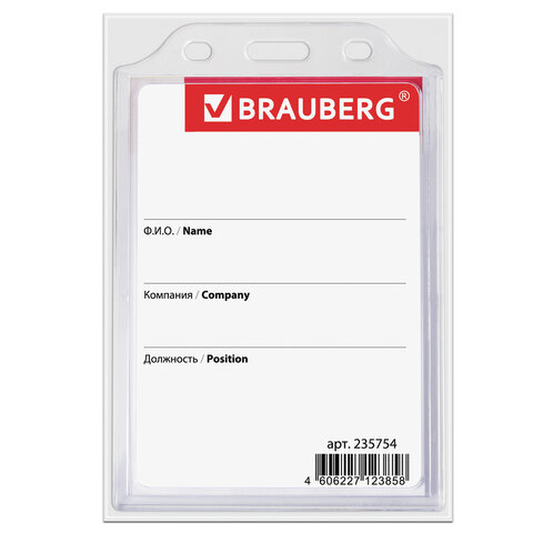 Вертикальный бейдж BRAUBERG для именной карточки предназначен для идентификации сотрудников в компаниях, а также на семинарах, тренингах, презентациях и других мероприятиях.