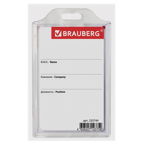 Вертикальный бейдж BRAUBERG для именной карточки предназначен для идентификации сотрудников в компаниях, а также на семинарах, тренингах, презентациях и других мероприятиях.
