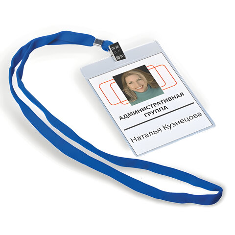 Бейджи вертикальные БОЛЬШИЕ (120x87 мм), КОМПЛЕКТ 10 шт., на синей ленте 45 см, ДПС, 1065.ВК-101