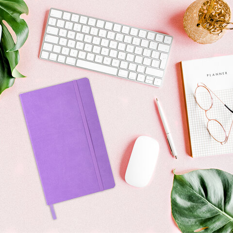 Блокнот А5 (130х210 мм), BRAUBERG ULTRA, под кожу, 80 г/м2, 96 л., в точку, сиреневый, 113013