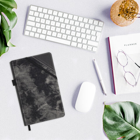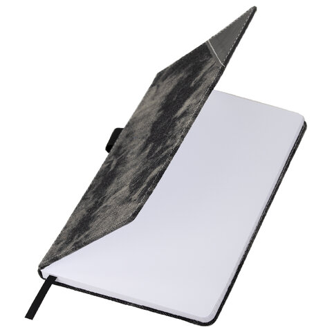 Блокнот А5 135x210 мм BRAUBERG "Denim", ткань/экокожа, резинка, держатель, 80 л., клетка, черный, 117140