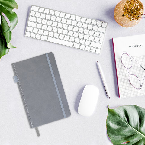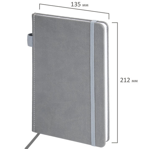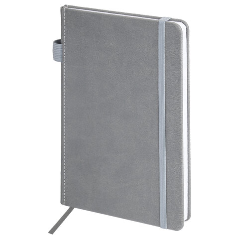 Блокнот А5 135x212 мм BRAUBERG "Edge", под кожу, резинка, держатель, 80 л., клетка, серый, 117146