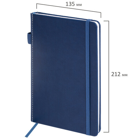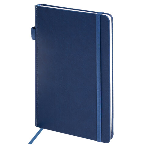 Блокнот А5 135x212 мм BRAUBERG "Edge", под кожу, резинка, держатель, 80 л., клетка, синий, 117149