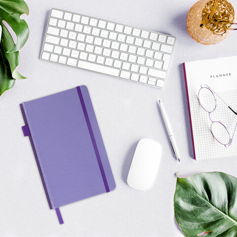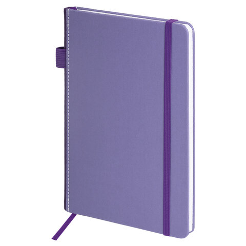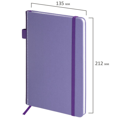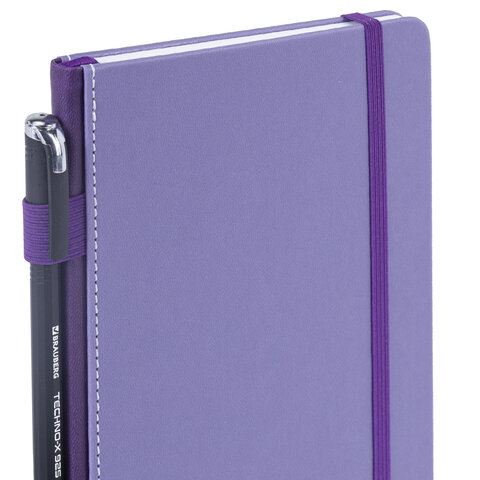 Блокнот А5 135x212 мм BRAUBERG "Edge", под кожу, резинка, держатель, 80 л., клетка, сиреневый, 117150