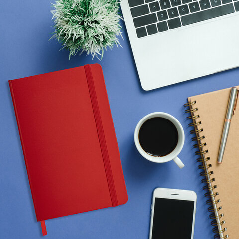 Блокнот А5 138x213 мм, BRAUBERG "Basic", под кожу, 80 л., клетка, красный, 116228