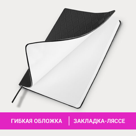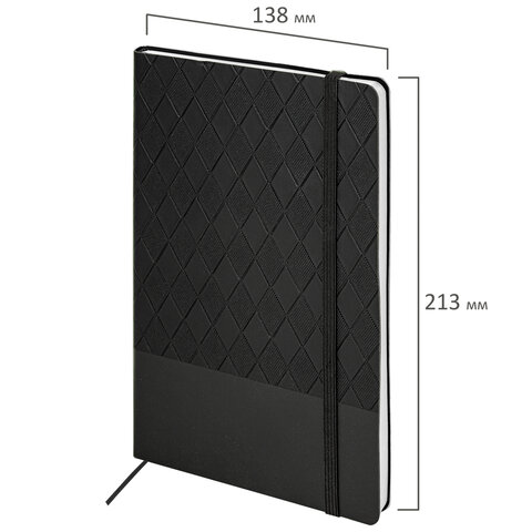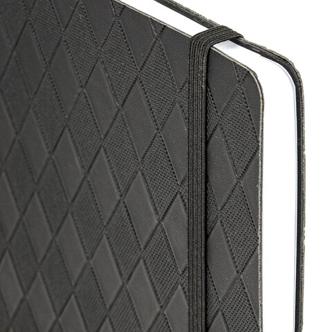 Блокнот А5 138x213 мм, BRAUBERG "Tissage", под кожу, 80 л., резинка, клетка, черный, 116601