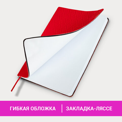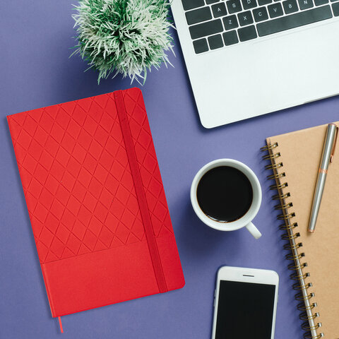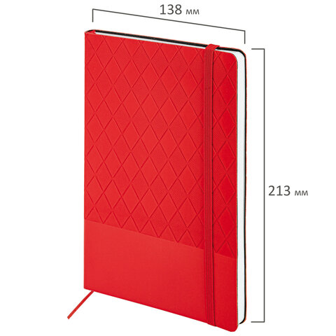 Блокнот А5 138x213 мм, BRAUBERG "Tissage", под кожу, 80 л., резинка, клетка, красный, 116603