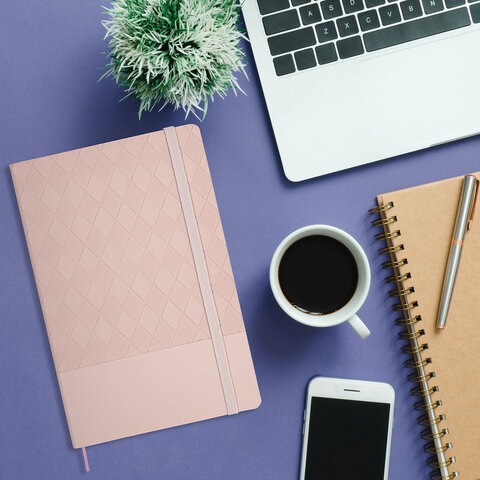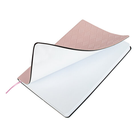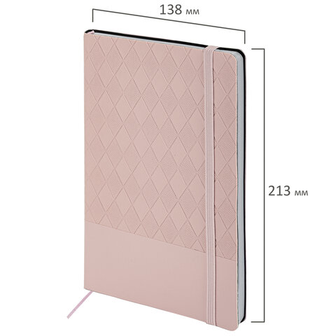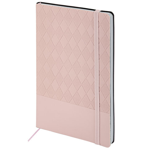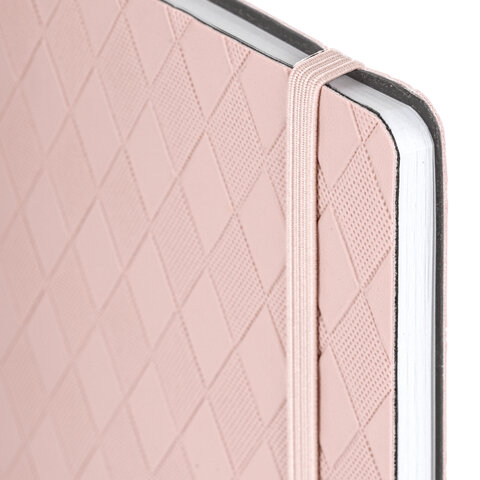 Блокнот А5 138x213 мм, BRAUBERG "Tissage", под кожу, 80 л., резинка, клетка, нежно-розовый, 116604