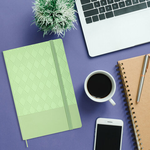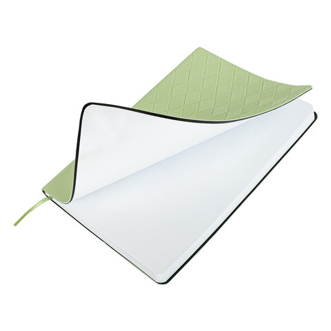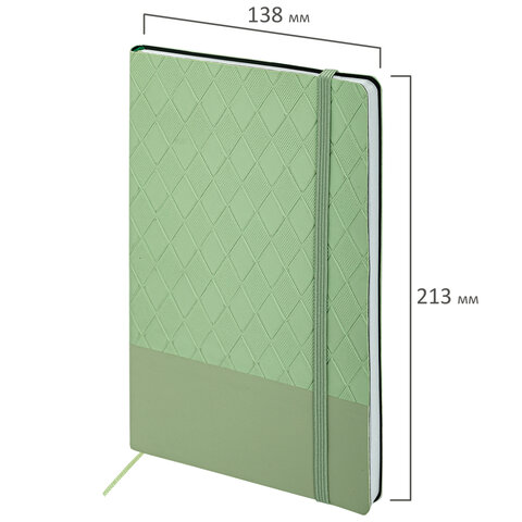 Блокнот А5 138x213 мм, BRAUBERG "Tissage", под кожу, 80 л., резинка, клетка, оливковый, 116602
