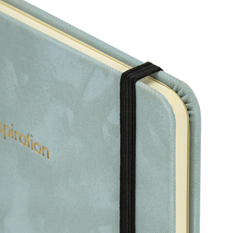 Блокнот А5 138x213 мм, BRAUBERG "Velvet", резинка, держатель, 80 л., клетка, серо-голубой, 116241