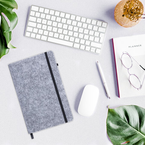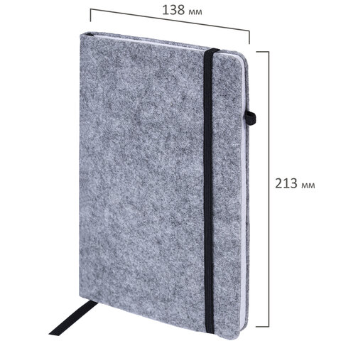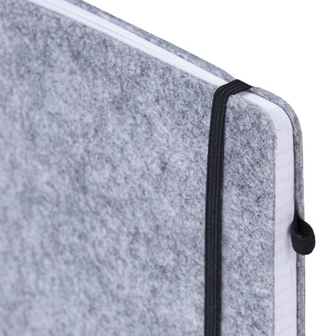 Блокнот А5 138x213 мм BRAUBERG "Voylok", войлок, резинка, держатель, 80 л., клетка, серый, 117135