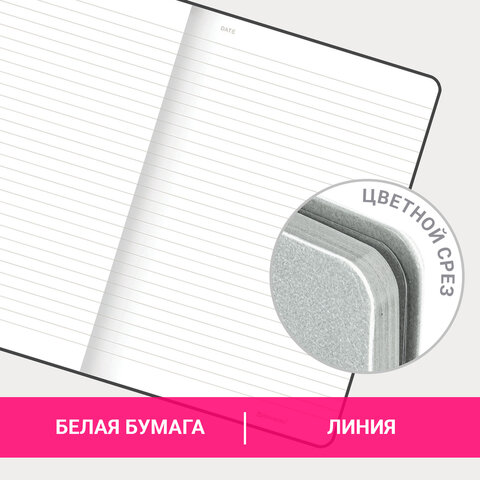 Блокнот А5 (140х200 мм), BRAUBERG "NEBRASKA", под кожу, 80 л., линия, серый, 113410