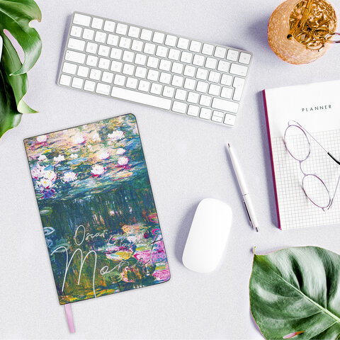 Блокнот А5 (143x210 мм), BRAUBERG VISTA "Claude Monet", под кожу, гибкий, срез фольга, 80 л., 112058