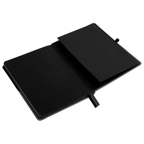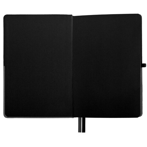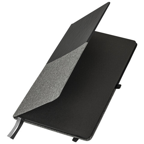 Блокнот А5 (148х218 мм), BRAUBERG "DUO", под кожу с резинкой, 80 л., клетка, черный/серый, 113433