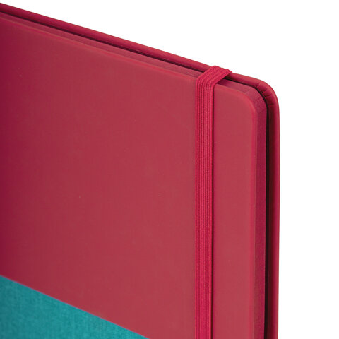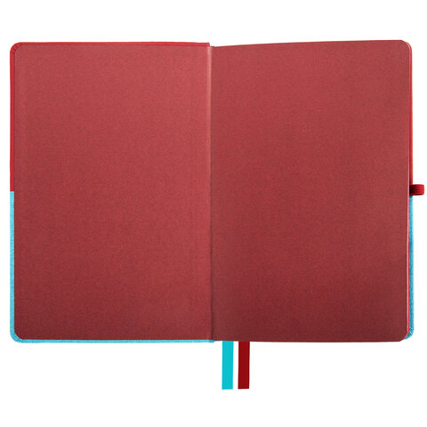 Блокнот А5 (148х218 мм), BRAUBERG "DUO", под кожу с резинкой 80 л., клетка, красный/бирюзовый, 113431