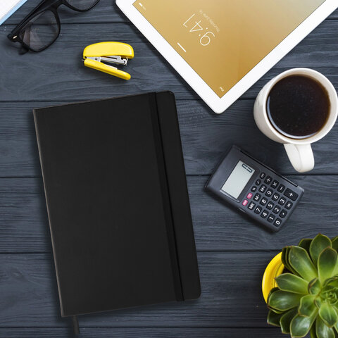 Блокнот А5 (148х218 мм), BRAUBERG "Select", 96 л., балакрон, резинка, клетка, черный, 125211