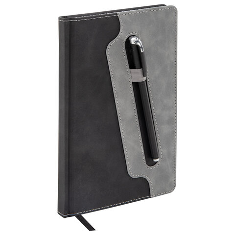 Блокнот формата А5 BRAUBERG "Assistant" с оригинальным дизайном обложки. Приятная на ощупь обложка дополнена удобным держателем для ручки.