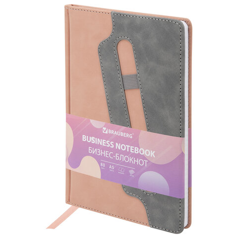 Блокнот А5 148x218 мм BRAUBERG "Assistant", под кожу, 80 листов, держатель, клетка, розовый, 118631