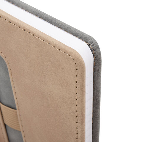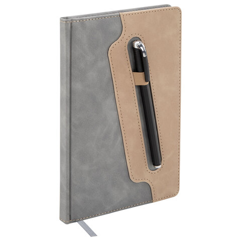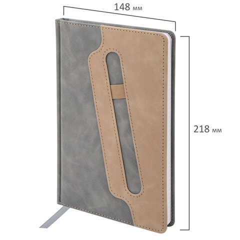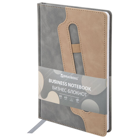 Блокнот А5 148x218 мм BRAUBERG "Assistant", под кожу, 80 листов, держатель, клетка, серый, 118632