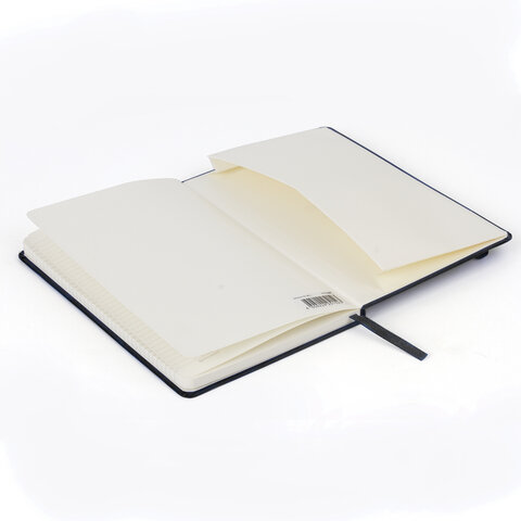 Блокнот А5 (148x218 мм), BRAUBERG "Metropolis", балакрон, 80 л., резинка, клетка, черный, 111585