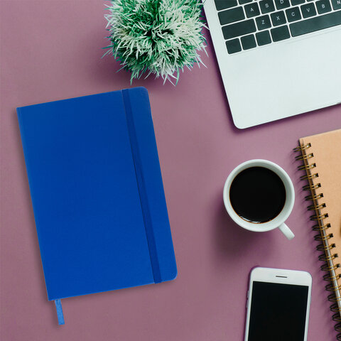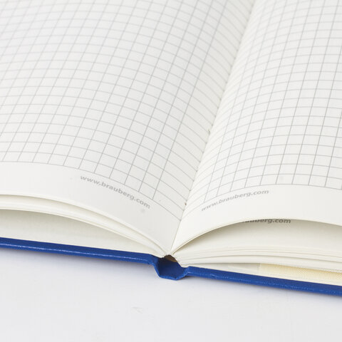 Блокнот А5 (148x218 мм), BRAUBERG "Metropolis", балакрон, 80 л., резинка, клетка, синий, 111582