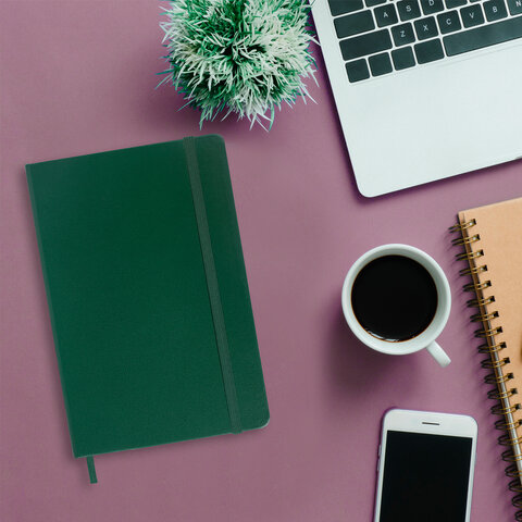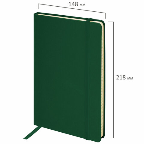 Блокнот А5 (148x218 мм), BRAUBERG "Metropolis", балакрон, 80 л., резинка, клетка, зеленый, 111583