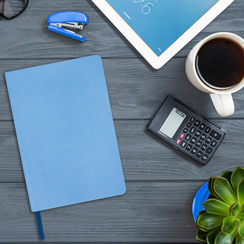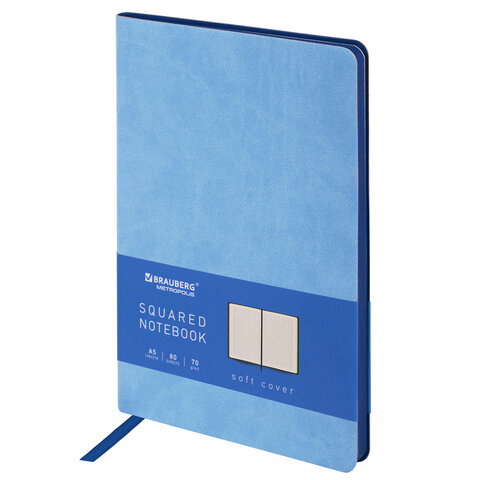Блокнот А5 (148x218 мм), BRAUBERG "Metropolis Mix", под кожу, 80 л., клетка, голубой, 111040