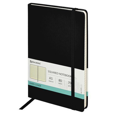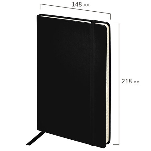 Блокнот А5 (148x218 мм), BRAUBERG "Metropolis Special", под кожу, 80 л., резинка, клетка, черный, 111577