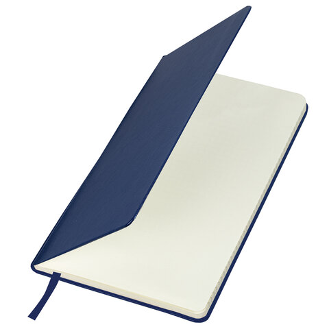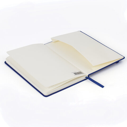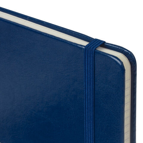 Блокнот А5 (148x218 мм), BRAUBERG "Metropolis Special", под кожу, 80 л., резинка, клетка, синий, 111574