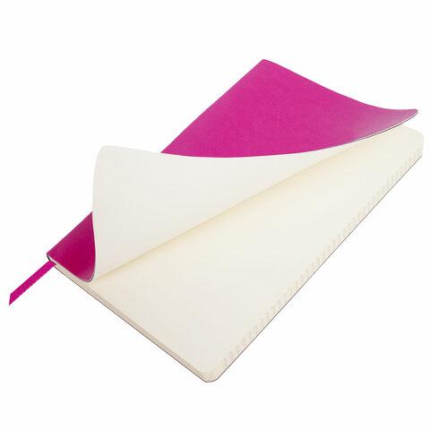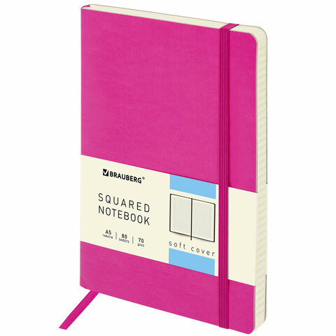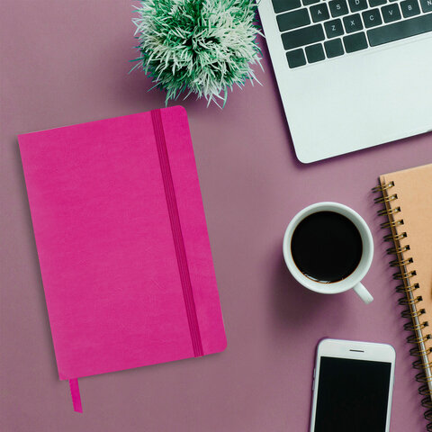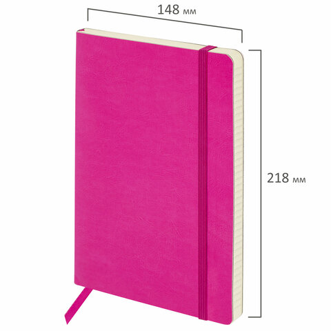 Блокнот А5 (148x218 мм), BRAUBERG "Metropolis Ultra", под кожу, 80 л., резинка, клетка, розовый, 111024
