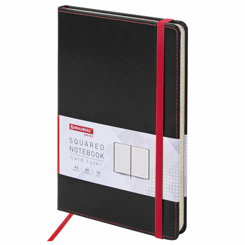 Блокнот А5 (148x218 мм), BRAUBERG "Office", под кожу, 80 л., резинка, клетка, черный, 111027