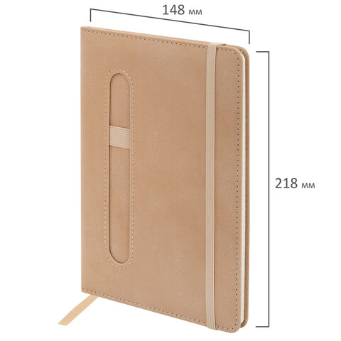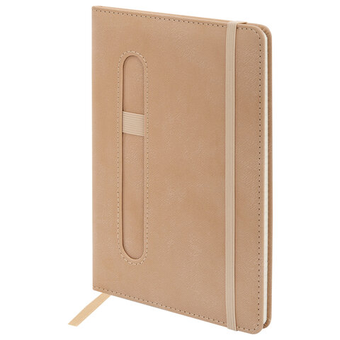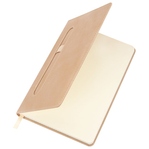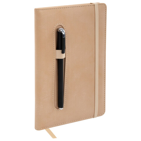 Блокнот А5 148x218 мм BRAUBERG "Optimal", под кожу, 80 листов, резинка, держатель для ручки, клетка, бежевый, 118636