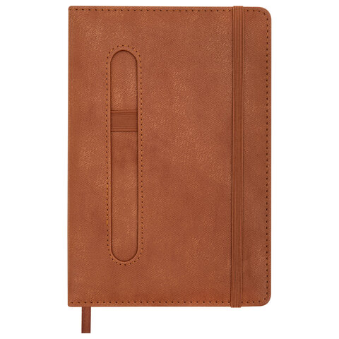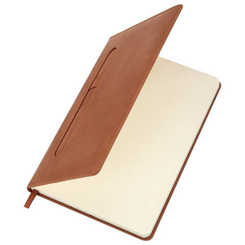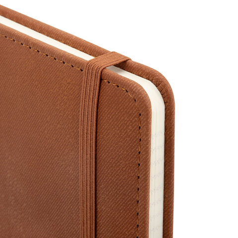 Блокнот А5 148x218 мм BRAUBERG "Optimal", под кожу, 80 листов, резинка, держатель для ручки, клетка, коричневый, 118637