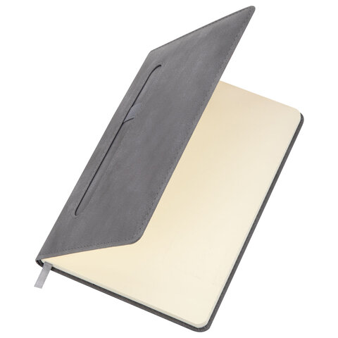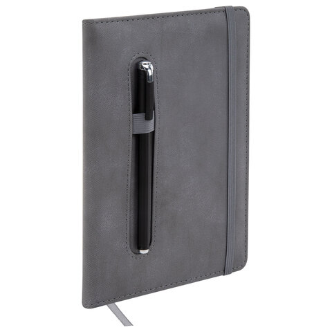 Блокнот А5 148x218 мм BRAUBERG "Optimal", под кожу, 80 листов, резинка, держатель для ручки, клетка, серый, 118638
